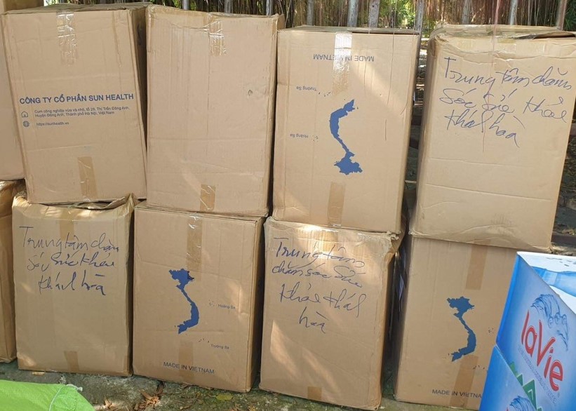 Hình ảnh: Đồ bảo hộ do CBVC-NLĐ Trung tâm CSSKSS tỉnh Khánh Hòa chuyển tặng cho Y Bác sĩ tỉnh Bắc Giang tại vùng giáp ranh