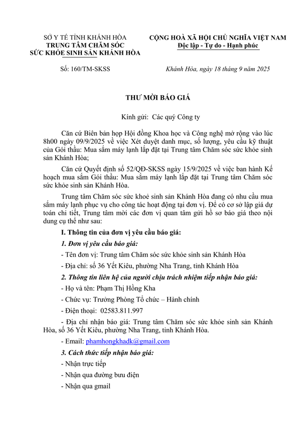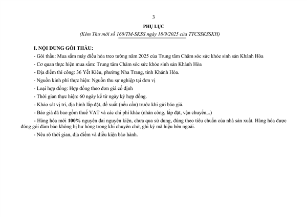 Thư mời báo giá 7 máy lạnh 2025