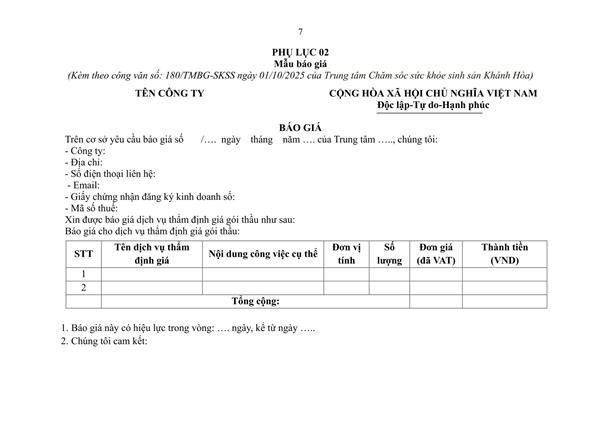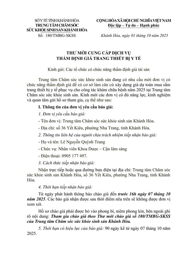 180.ss.Thư mời cung cấp dịch vụ thẩm định giá trang thiết bị y tế
