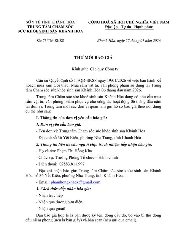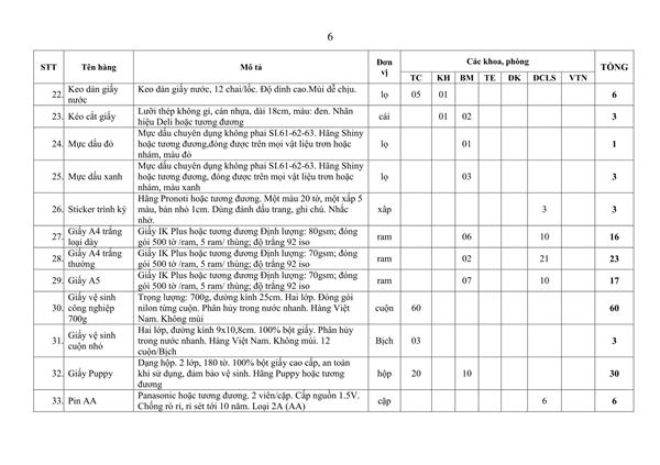 Thư mời báo giá văn phòng phẩm 6 tháng năm 2026