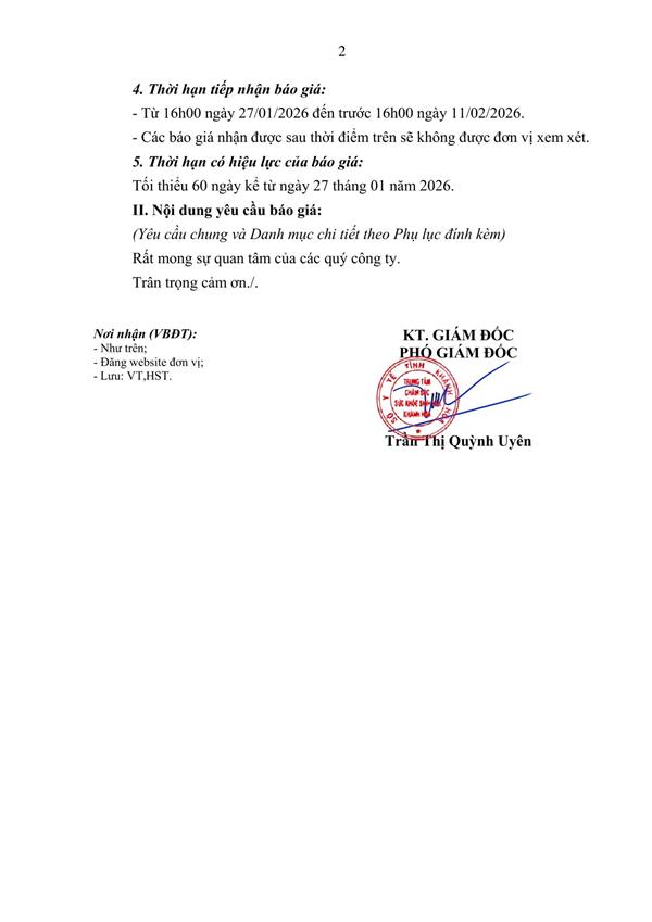THƯ MỜI BÁO GIÁ GÓI THUÊ ĐƠN VỊ CUNG CẤP DỊCH VỤ XÉT NGHIỆM