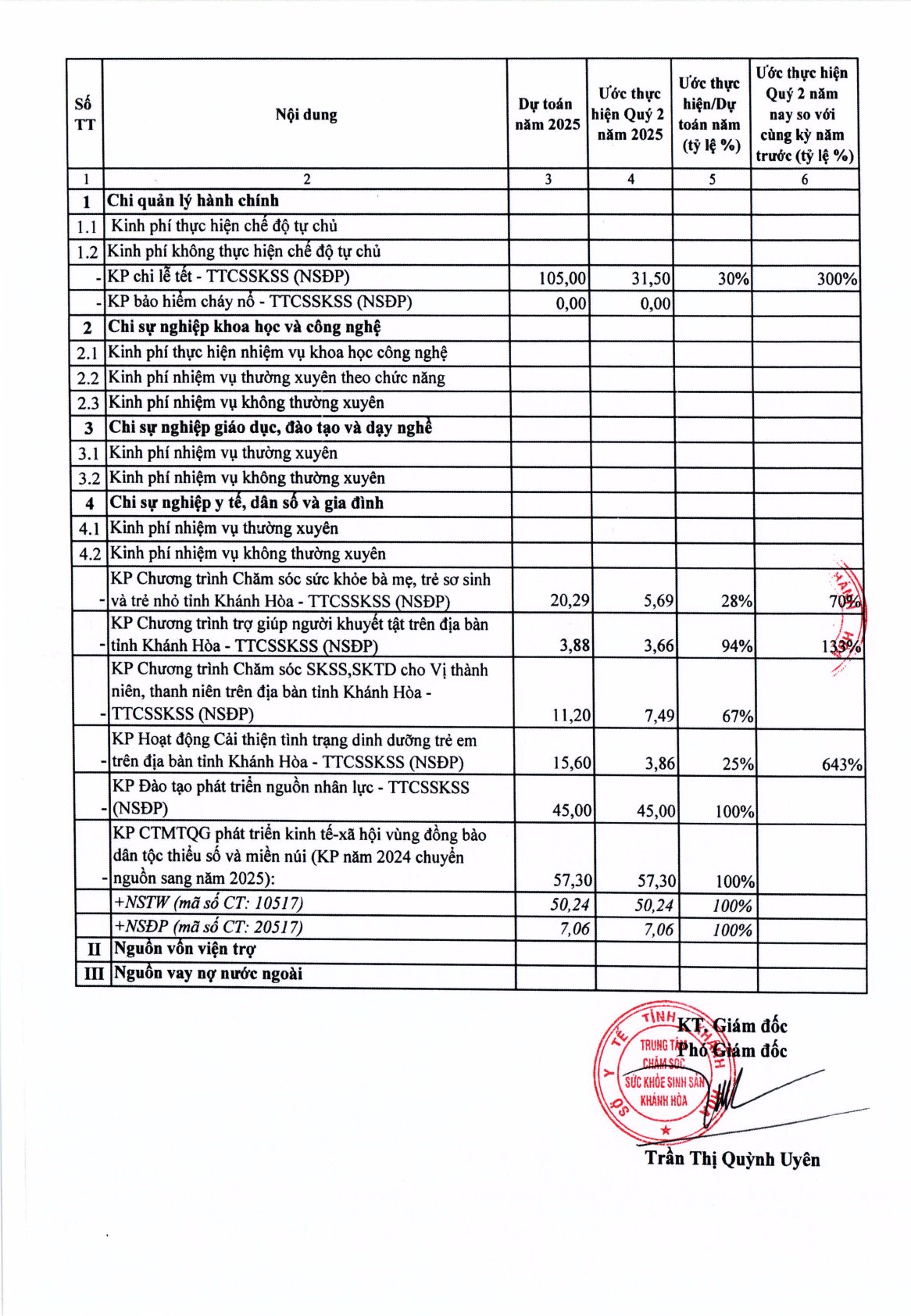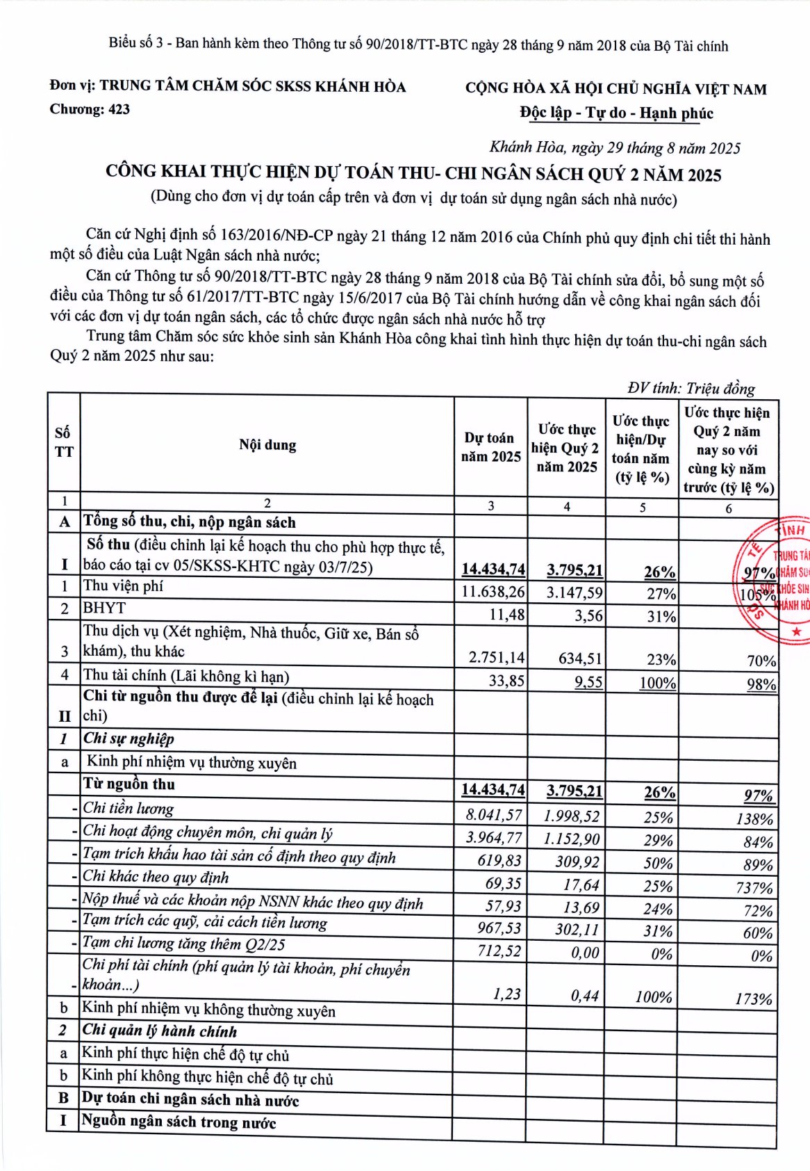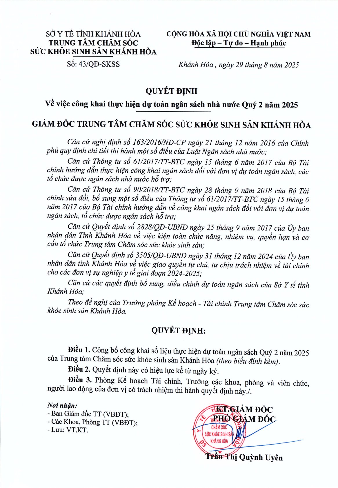 Quyết Định Về việc công khai thực hiện dự toán ngân sách nhà nước Quý 2 năm 2025